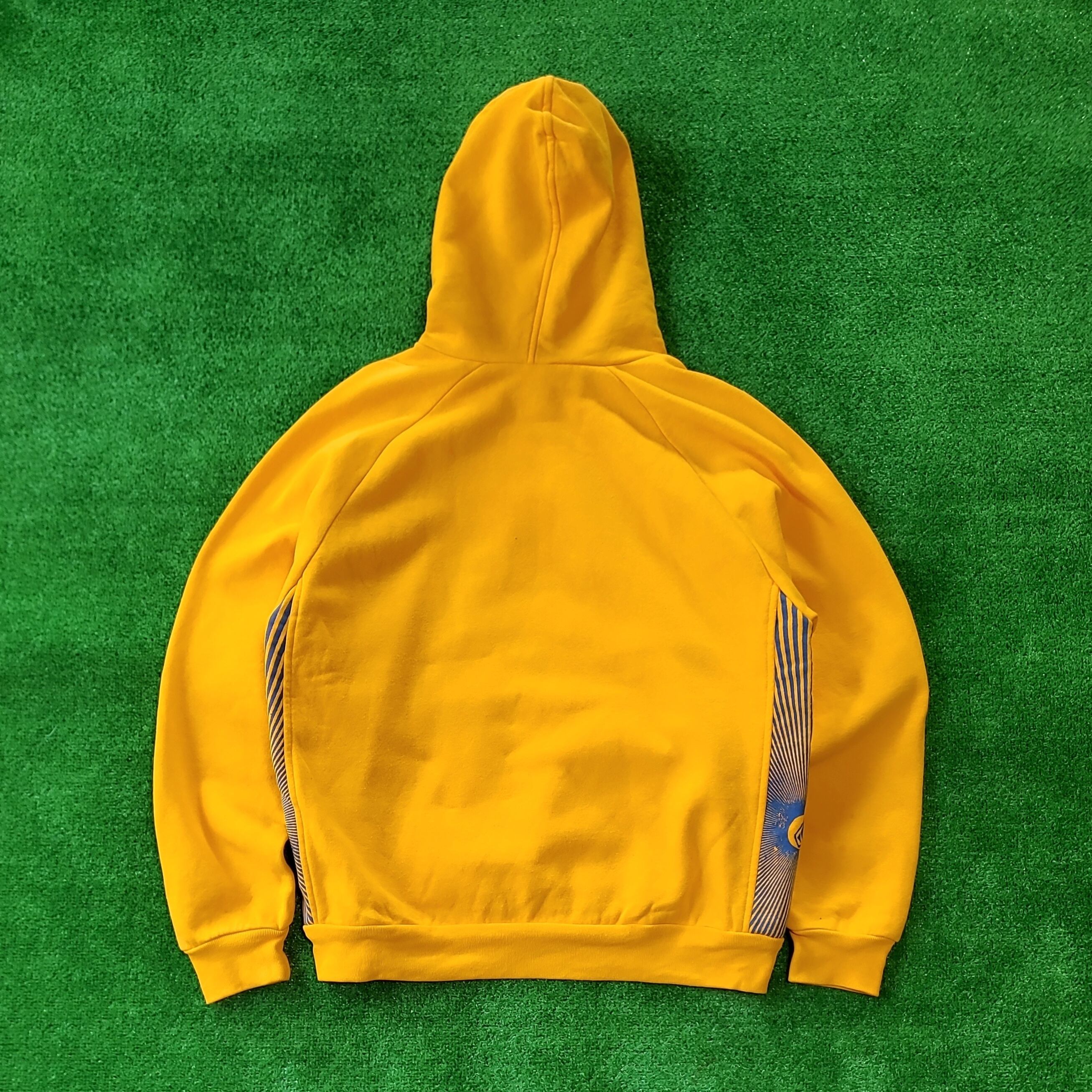 近年のVOLCOM(横乗り系ブランド全般?)は、古着好きな方達の間では必ずしも良いイメージとは言えないかもしれませんが、こちらのフーディーはちょっと違います。オールド感のあるヘヴィな生地、ダブルフェイスのフードからチラッと見えるブルーとイエローのコントラスト。サイドはリバースウィーブのような生地使い。そして何と言ってもmade in USA。