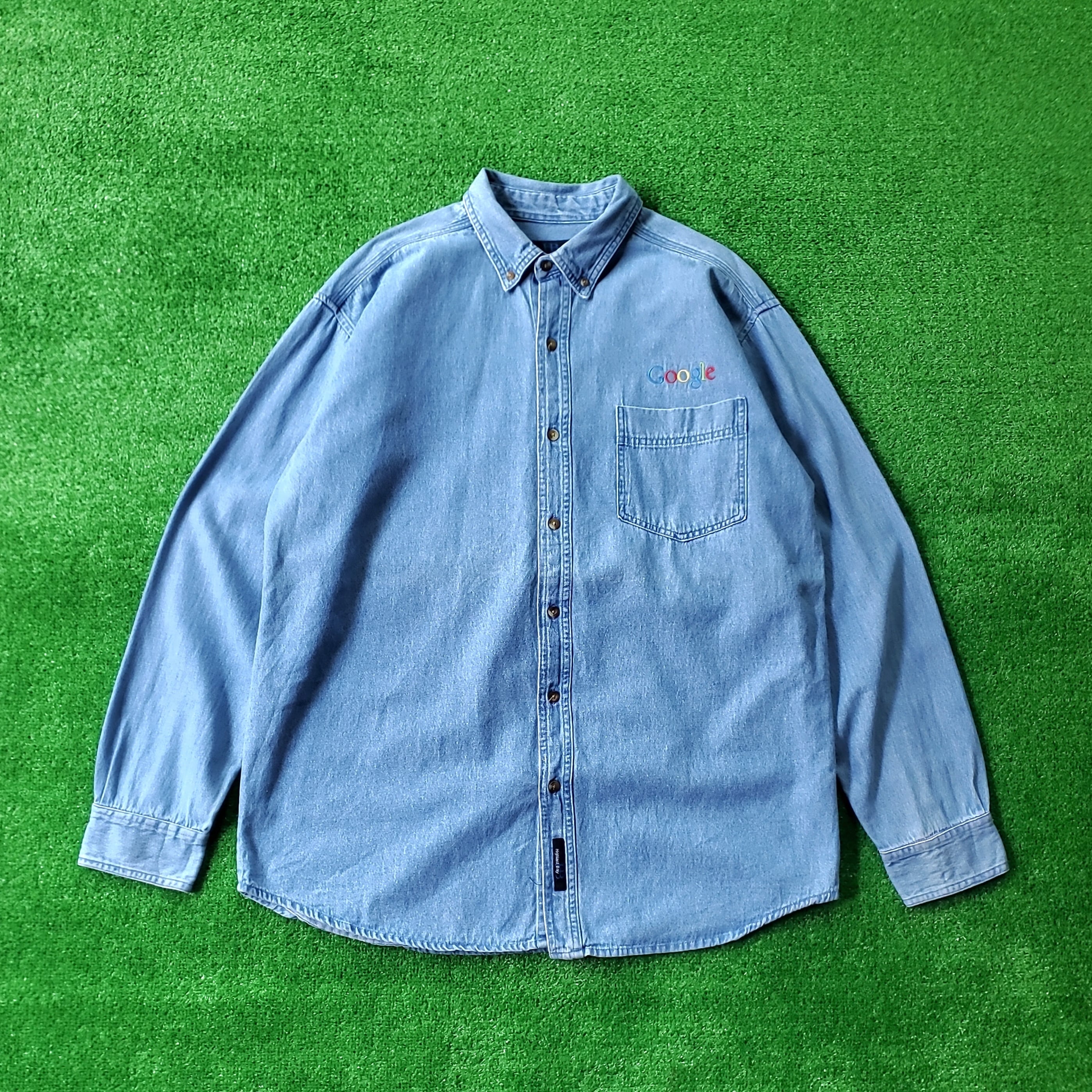 皆が毎日お世話になり、もはや生活に欠かせないライフラインと言えるGoogle社のロゴが刺繍されたデニムシャツ。